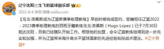 北京时间7月4日,根据辽宁男篮官方社交媒体透露,经过俱乐部与乌戈·洛佩斯教练友好协商并达成一致,即日起正式与乌戈教练完成三年续约。
